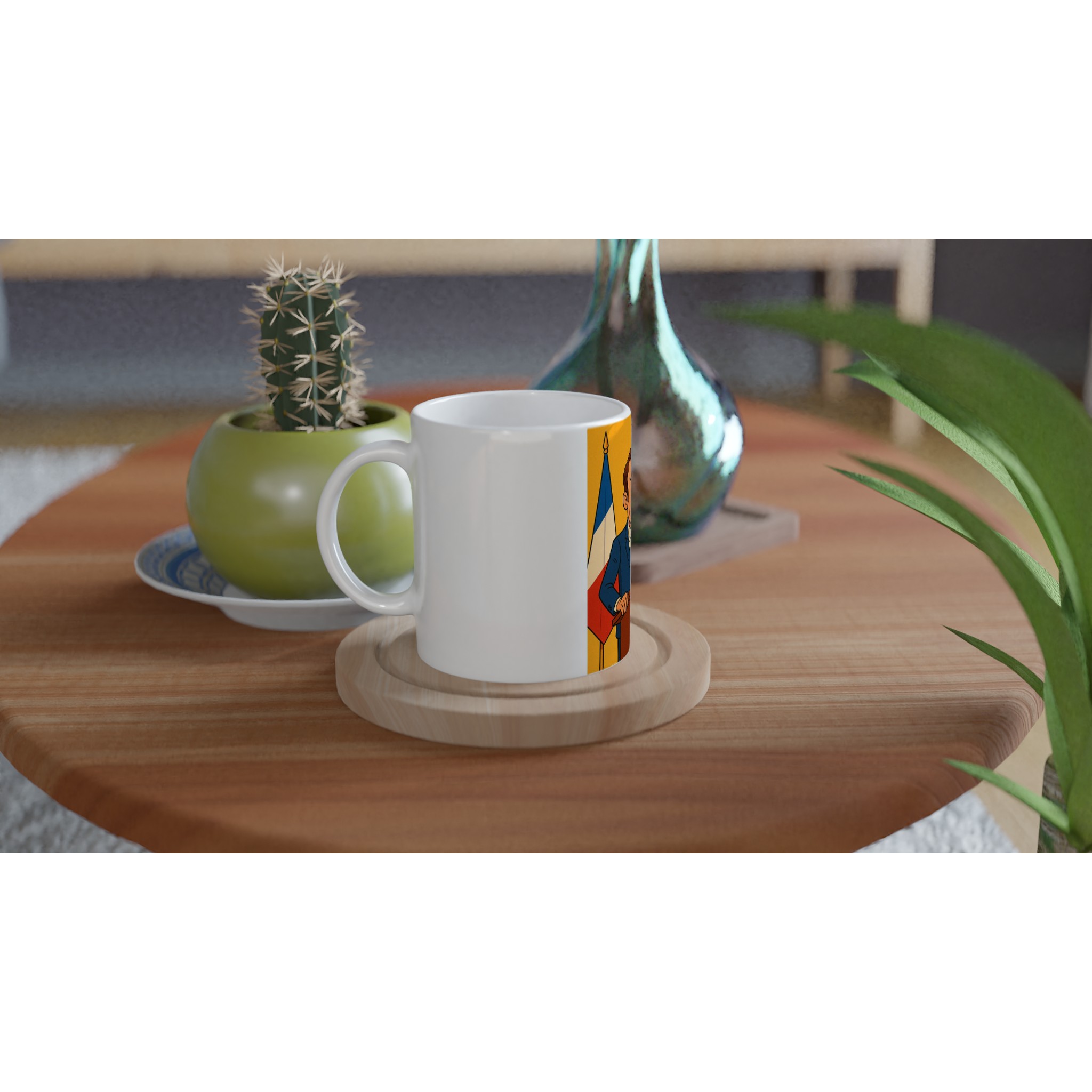 This beautiful ceramic mug is perfect for any event of the day. Your morning coffee, a hot chocolate, or any other hot beverage you enjoy. The mug is glossy white and the prints come out beautifully and vividly on it. The print retains its quality and luster when used in both microwaves and the dishwasher.